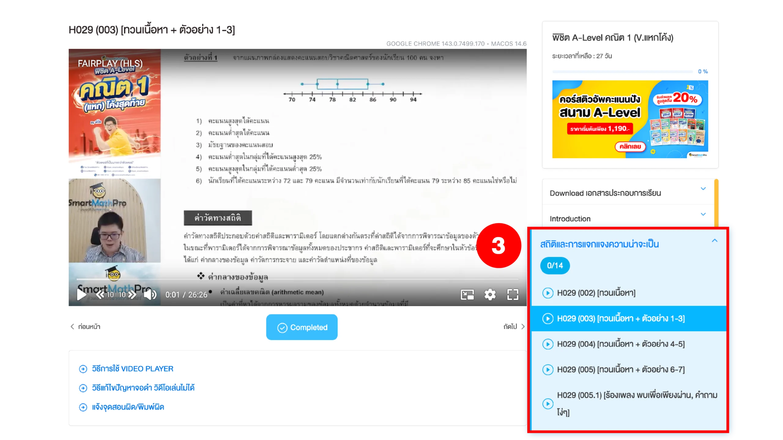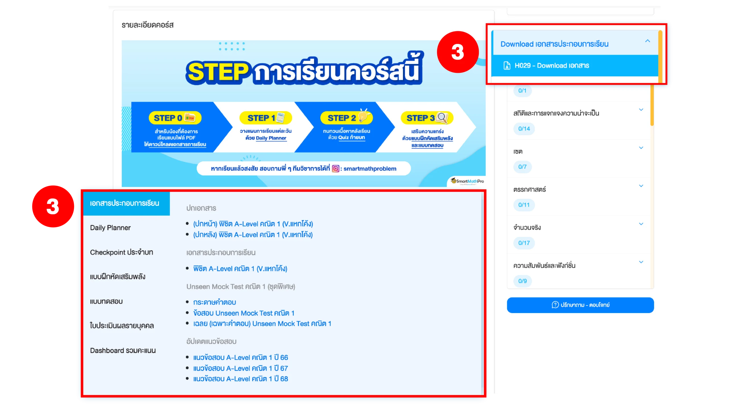 3. กด ‘Download เอกสารประกอบการเรียน’ และเลือกคลิปเรียนที่แถบด้านขวา
