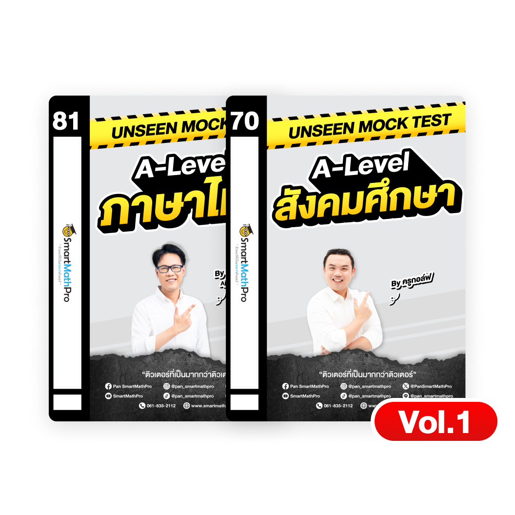 โปรโมชันคอร์ส A-Level ไทย-สังคม : รับฟรี ไฟล์ข้อสอบจำลองเสมือนจริง Unseen Mock Test ไทย-สังคม ชุดพิเศษสนามละ 1 ชุด (รวม 2 ชุด) พร้อมคลิปเฉลยละเอียด