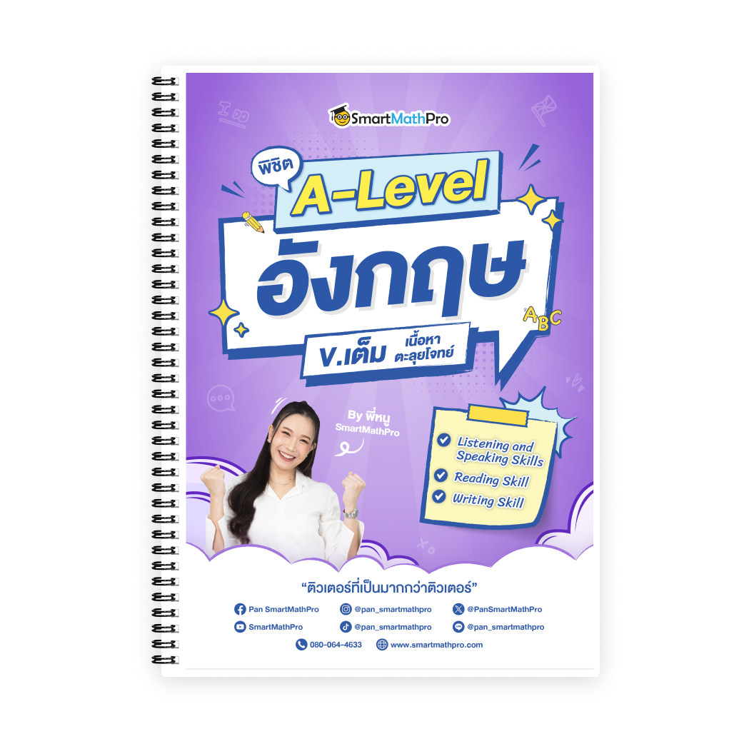 พาตะลุยแนวข้อสอบจริง A-Level ภาษาอังกฤษ อัปเดตถึงปีล่าสุด (ปี 68) และแนวข้อสอบที่พี่หนูและทีมวิชาการแต่งใหม่ โดยอ้างอิงจากการวิเคราะห์ข้อสอบย้อนหลัง 10 ปี ควบคู่กับ Test Blueprint ปีล่าสุด พร้อมเก็งแนวโจทย์ (Unseen) ที่คาดว่าจะออกสอบ เพื่อให้น้องคุ้นเคยกับรูปแบบและระดับความยากของข้อสอบจริงที่น้องต้องเจอ (มีแบบฝึกหัดให้ฝึกทำเพิ่มความเข้าใจในแต่ละพาร์ตด้วย) พร้อมสอนเทคนิคทำข้อสอบ รับรองว่าน้องจะเข้าใจจนทำได้ถูกต้องและทันเวลา !!
